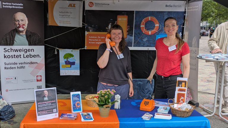 Beim diesjährigen Welttag der Suizidprävention waren wir unter anderem mit einem Stand vertreten und informierten über unsere Hilfsangebote – unser Seelsorgetelefon und unsere Beratungsstelle BeSu Berlin.